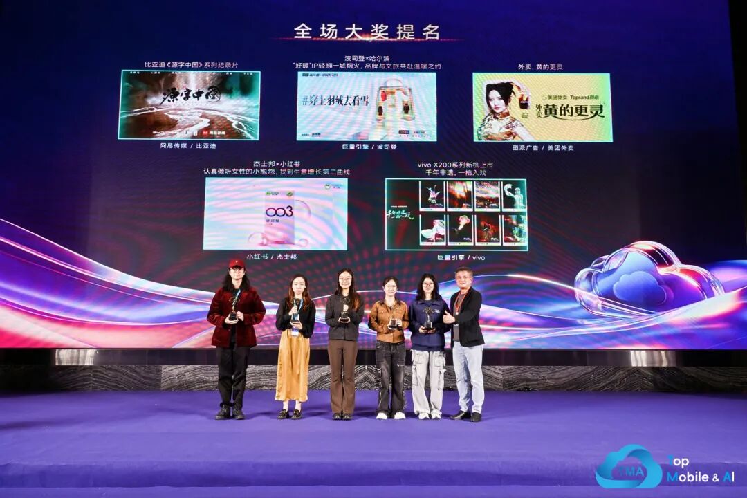 全场大奖PK赛历来是TMA盛典最为瞩目的经典环节。经过初审、终审层层筛选,5个全场大奖提名案例脱颖而出,分别是网易传媒报送的《比亚迪<源字中国>系列纪录片》、图派广告报送的《外卖,黄的更灵》、巨量引擎&vivo报送的《vivo X200系列新机上市——千年非遗,一拍入戏》、小红书&叁柒集团报送的《杰士邦×小红书认真倾听女性的小抱怨,找到生意增长第二曲线》、巨量引擎&波司登报送的《波司登×哈尔滨 “好暖”IP轻拥一城烟火,品牌与文旅共赴温暖之约》。